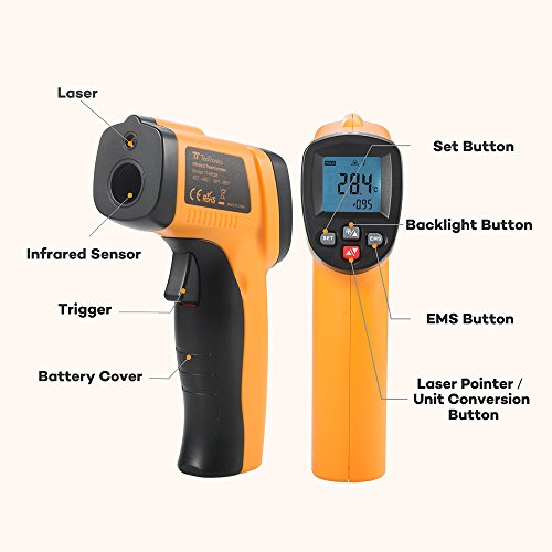 TaoTronics Digital Infrared Thermometer Laser Temperature Gun -58°F ~ 788°F ( -50°C ~ 420°C) with Adjustable Emissivity & LCD Backlit for Object Surface Measurement, Battery Included