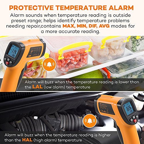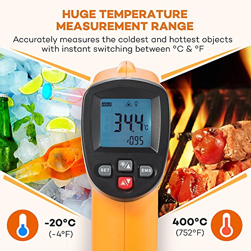 Huge Temperature Measurement Range: Accurately measures objects as cold as -50°C / -58°F to those as hot as 420°C / 788°F; includes instant switching between °C and °F for greater convenience; ideal for chefs, as well as repairmen and technicians.