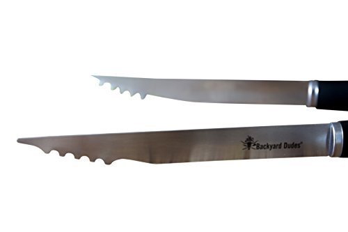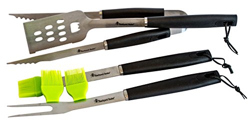 Backyard Dudes BBQ Grilling Tools 4 pc Stainless Steel Professional Grade Heavy Duty Utensils -Spatula Tongs Fork Silicone Brush- Great for patio Barbecue Party BBQ Grilling Accessories