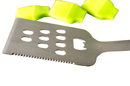 ✔︎SPATULA with serrated edge, bottle opener, Fork & spring style claw Tongs, silicone basting brush