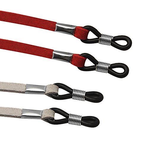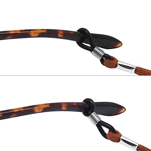 -. Feature : Sunglasses Straps -- Save your eye glass from slipping off. Keep your glasses close at hand / Universal eyeglass retainers -- Fit most glasses frames, can work well with prescription glasses, sunglasses, reading glasses, safety glasses, etc / Tricky Rubber Ends -- Adjustable eyeglass holders on both sides of the cords, adjust the glass straps for your every need / Classic design -- Soft and pliable, will not fray or break easily, can serve for long time / Package -- 4 x eyeglass chains, 27 1/2'' (70cm) Length