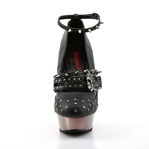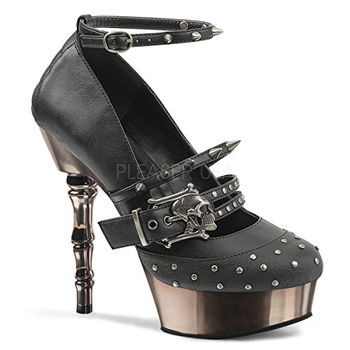 Studio : Demonia Publisher : Demonia Binding : Apparel Product Description Muerto-680 Finger Bone Heel Mary Jane Pump Women's Black By Demonia. A wicked 5 1/2" (14cm) Finger Bone Heel pump! The pump features a 1 1/2" platform Double Strap Mary Jane Pump with Stud, Spike, and Skull Buckle Details and Pewter Chrome Plated Bottom. Made from Vegan Leather-Lizhiwen! 0