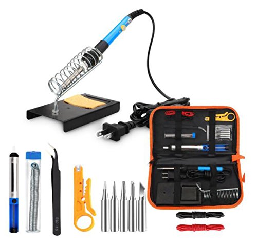 - 【14 in 1 Full Kit】- All accessories are carefully selected.Including soldering iron with 5 different tips, wire stripper cutter, soldering station, desoldering pump, 2pcs Electronic Wire, tweezers, tin wire tube,all in a PU tool bag, meeting you all soldering needs.