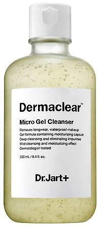 Dermaclear Micro Gentle Gel Cleanser is a gel-to-foam cleanser with moisturizing capsules that remove all makeup-even waterproof makeup-and impurities in pores without stripping the skin of moisture. The all-in-one cleanser works to visibly brighten, tone, and soften skin for a refreshed and healthy complexion. Formulated for all skin types and tested by dermatologists, it is safe for the eye area and lips.Feature