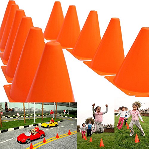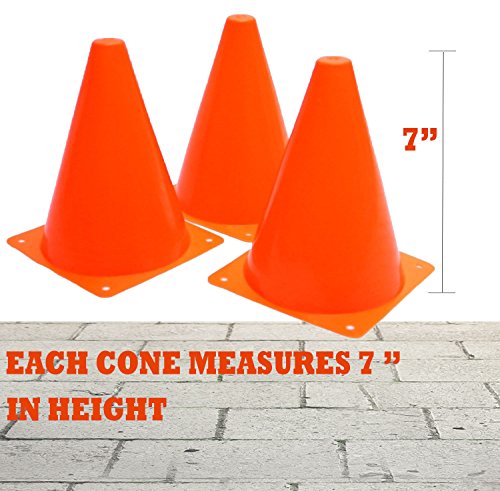 7 Inch Plastic Traffic Cones - 12 Pack of 7” Multipurpose Construction Theme Party Sports Activity Cones for Kids Outdoor and Indoor Gaming and Festive Events
