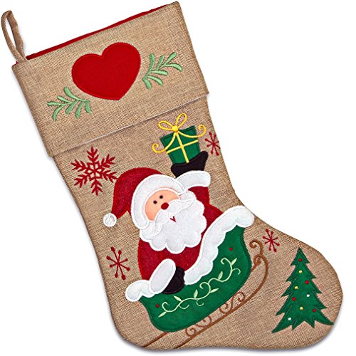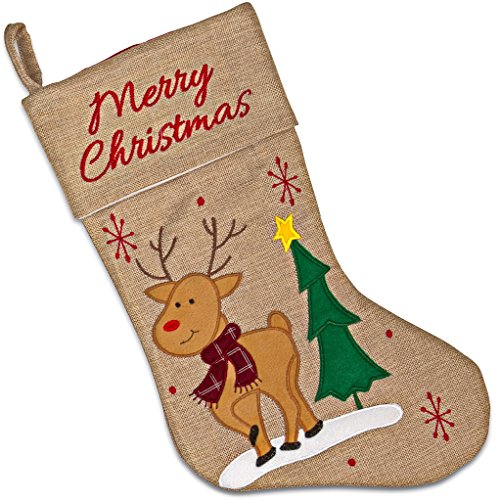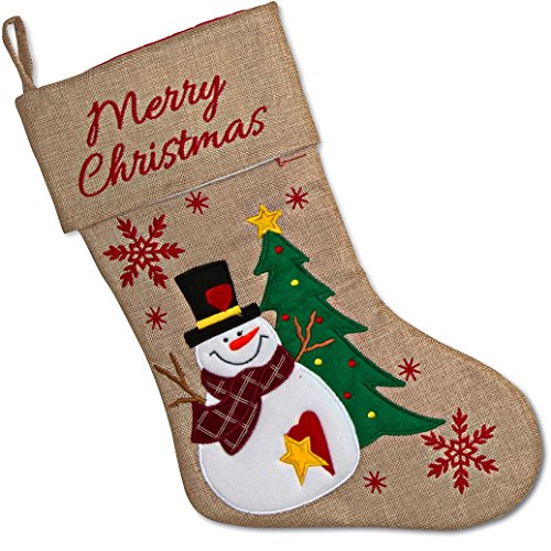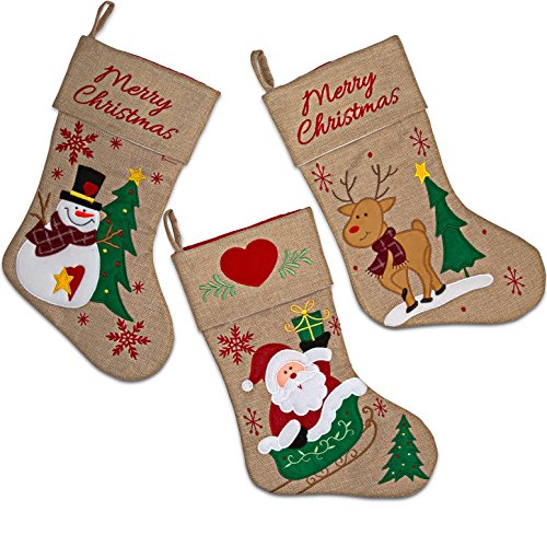 Set of 3 Burlap Christmas Stockings 18” Holiday Stocking Decorations, Santa Claus Reindeer and Snowman Characters For Fireplace Decor and Party Favors Accessories by Gift Boutique
