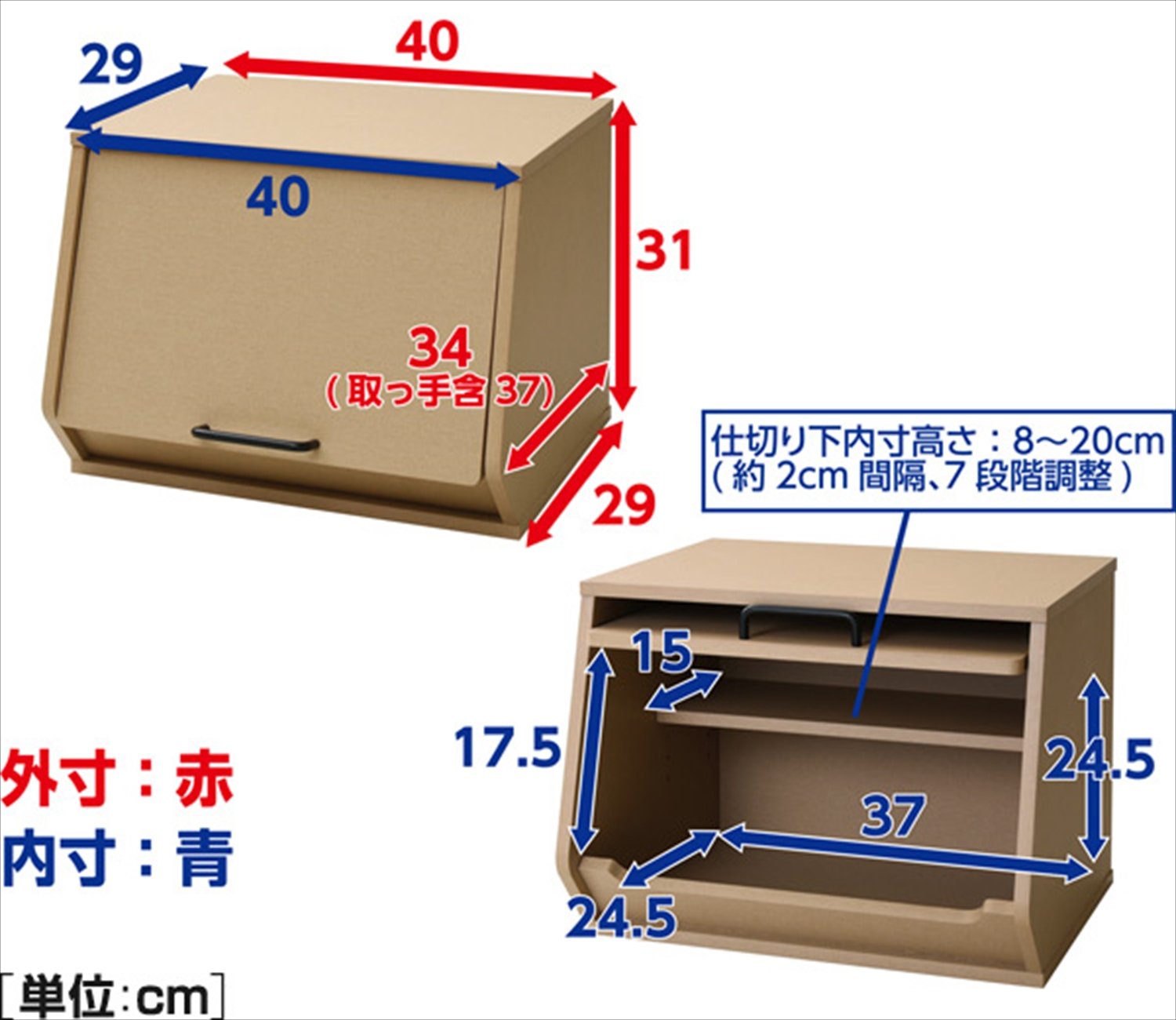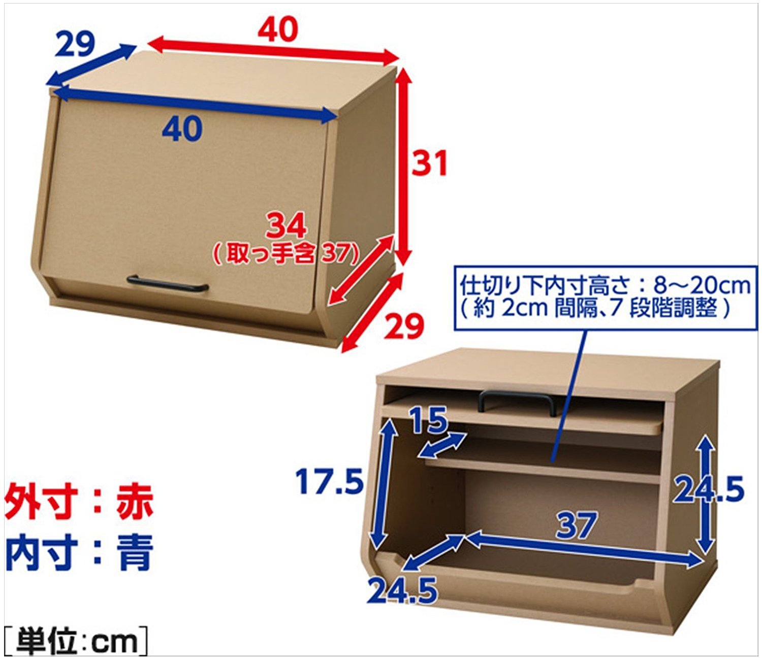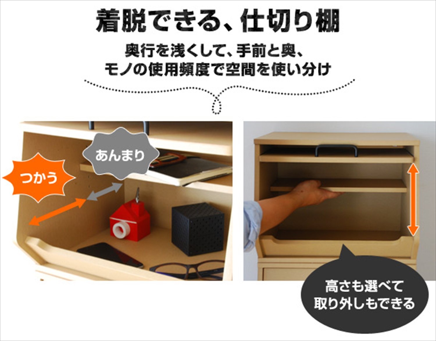 ● Use detachable and movable partition boards to divide the inside of the box into "frequently used items" and "not so"