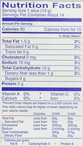 -. Feature : Made with wheat flour and sesame seeds / 60 calories per slice / Low fat, no cholesterol, low sodium / Try northern Europe's favorite cracker with your favorite toppings / Product of Germany / Made with whole grain wheat flour and sesame seeds / 38 calories per slice and an excellent source of whole grains