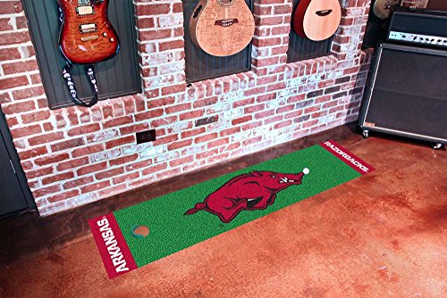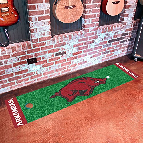 Studio : FANMATS Publisher : FANMATS Binding : Automotive Product Description Officially licensed putting green runner. Realistic putting surface. 11 on the stimpmeter. Chromojet printed nylon surface with vinyl backing. Can be used as a runner when not practicing. Comes with plastic target and flag. 0