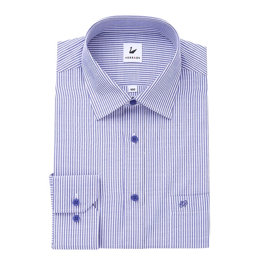 -혼방소재의 스트라이프무늬의 일반핏셔츠.