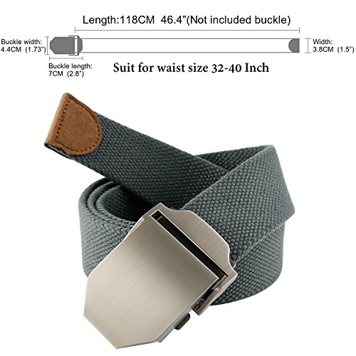 Suit for waist size 32-40 Inch.The total length not included buckle is 118cm(46.4 Inch), strap width is 3.8 cm(1.5 Inch). Buckle length: 7 cm(2.8 Inch), Buckle Width:4.4cm(1.73 Inch). One size suits trouser, jeans, pants and shorts of any size