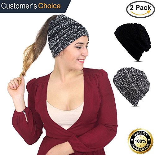 This beautiful ponytail knit hat is time saving solution for your messy hair on chilly days. We figured you want to use this cap to go to the grocery store and buy some meals, so we built it with that in mind. Our beanietail is a quick solution to hide your messy hair and look sexy and fashionable outdoor.