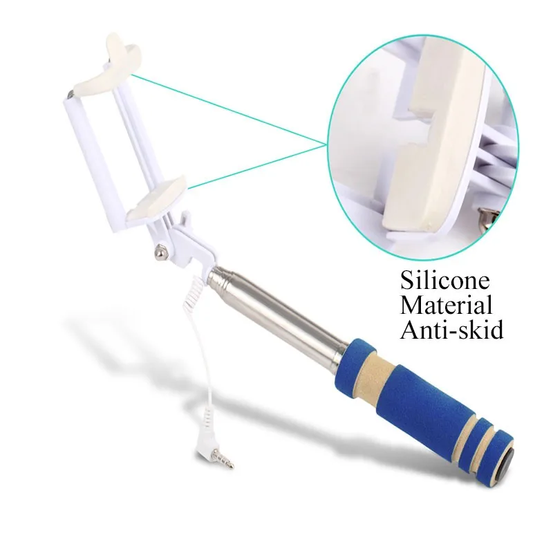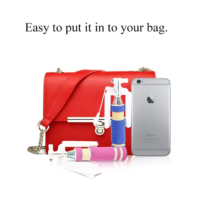 Mini portable extendable selfie monopod stick no bluetooth no battery, new mini monopod camera cable take pole 2062
