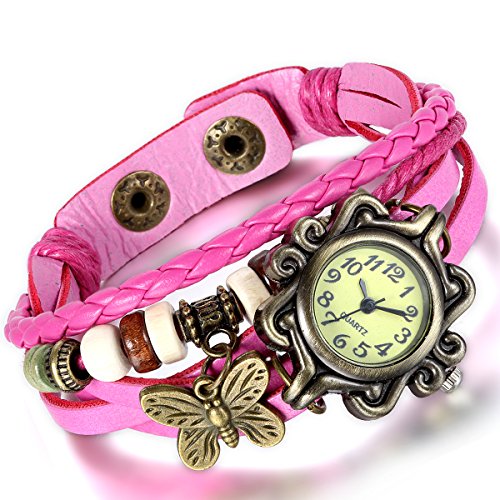 -. Title : Lancardo 2015 New Vintagte Plaited Braided Leather Straps Butterfly Pendants Wrist Watches (pack of 5)