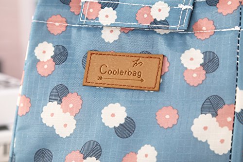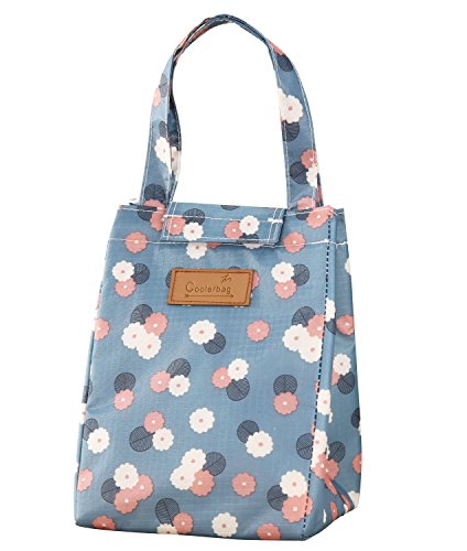 WOOSAL Fold-over Insulated Lunch Bag with Handles and Velcro Closure School Picnic Travel Lunch Box Tote Cooler Bag(7"x7"x9.8",Sky Blue)