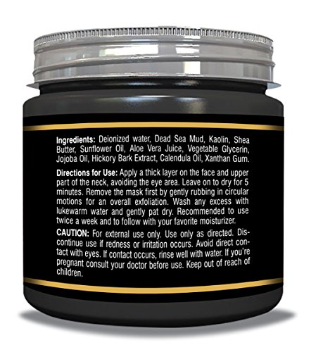 100% NATURAL AND PURE DEAD SEA MUD MASK: Stop using facial mud masks of questionable quality that usually irritate your skin. They contain parabens, synthetic dyes and fragrancies that are not safe to use on your face. The Dead Sea Mud Mask contains all natural ingredients such as magnesium, sodium, potassium and calcium that nourish your complexion.
