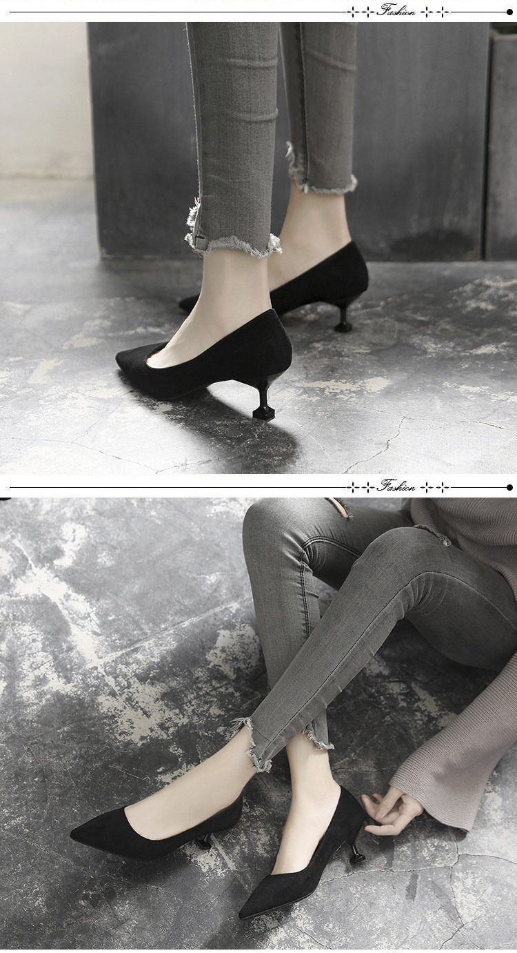 春季猫跟鞋女尖头细跟黑色高跟鞋韩版百搭中跟单鞋工作鞋