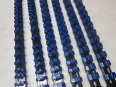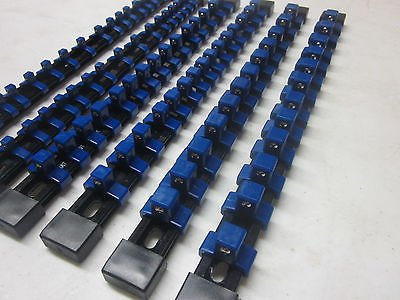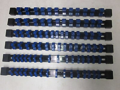 BLUE 6pc MOUNTABLE ABS SOCKET RAILS 1/4" 3/8" 1/2" RACK TRAY HOLDER ORGANIZERS