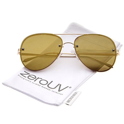 zeroUV - Modern Slim Metal Frame Brow Bar Colored Mirrored Flat Lens Aviator Sunglasses 60mm
