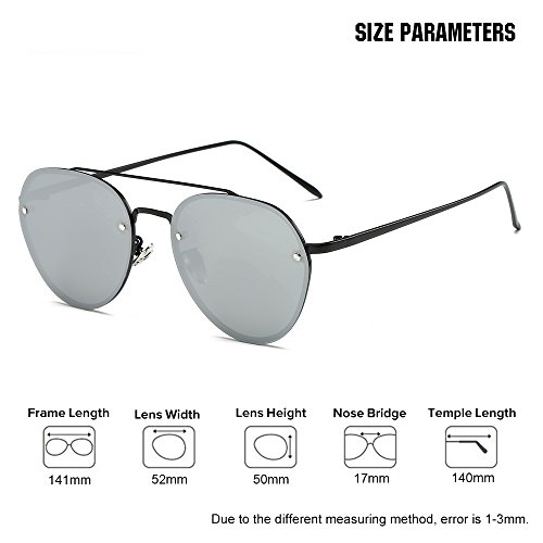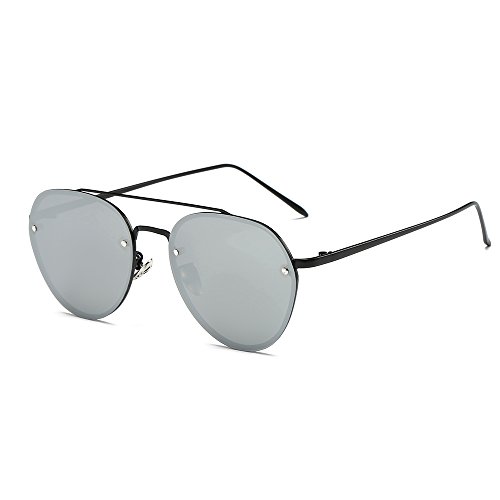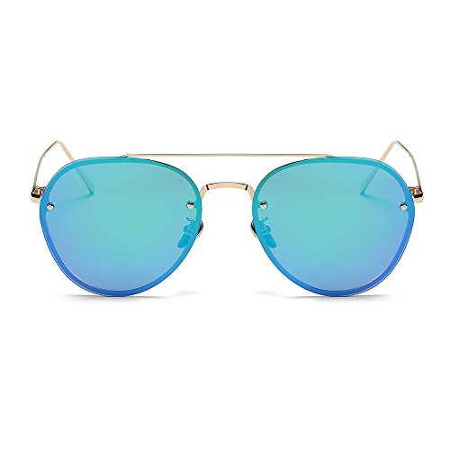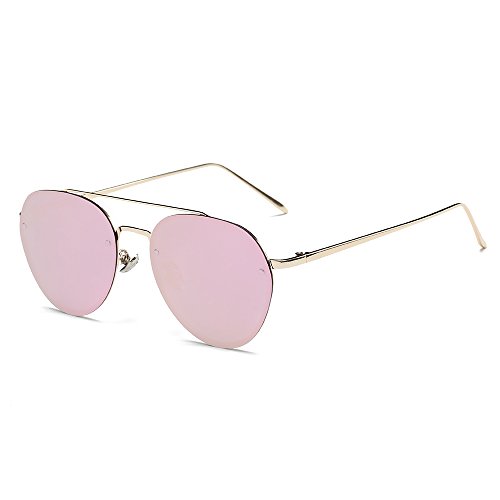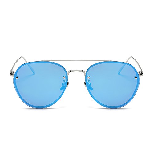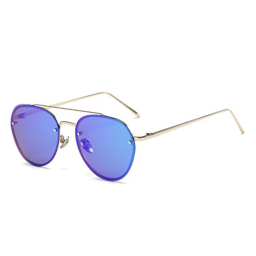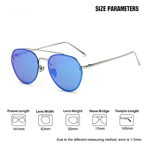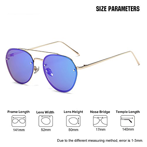 5.Full metal abstract panto shaped aviator sunglasses that feature a unique extended brow bar, colorful mirrored lenses and styled with flat lenses that are designed for less curvature of the frame.