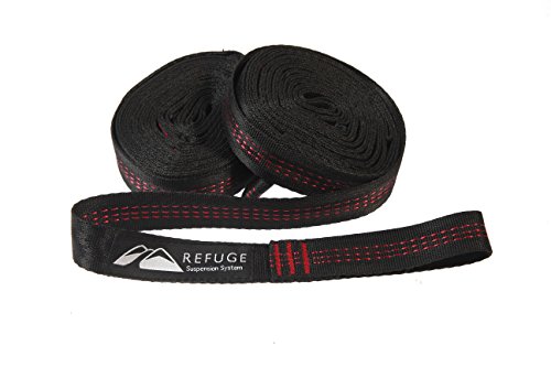 SUPERIOR TREE STRAPS AND CARABINER: Two 10' straps (120") with 15 loops each make the Refuge Suspension System superior to cheap parachord or braided nylong while our rust-proof carabiners (12 Kn—these can hold 2000 lbs.) are 4x stronger than traditional carabiners (we use it ourselves, so we want to trust it 100%). Advanced Triple Stitched Hammock Straps easy setup, adjustment, and storage.