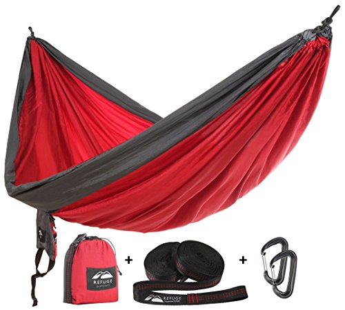 Double Camping Hammock with FREE Hammock Straps for Tree and 2000 lb Carabiners for Camping, Hiking, Highlining with by Refuge Outfitters—Startup with a Mission to Give Back!