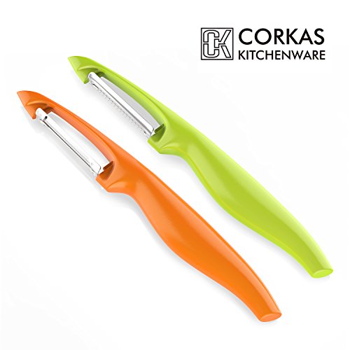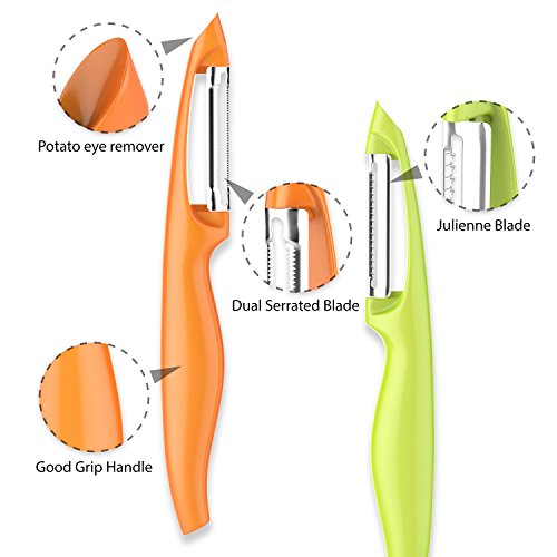 Corkas 2-Piece Fruit Vegetable Peeler Set,Serrated & Julienne Stainless Steel Blade with Good Grip Handle and Built-in Potato Eyes Remover