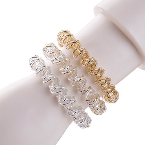 Metallic color Spiral Hair Ties No Crease Elastic Ponytail Holders Phone Cord Traceless Hair Ring Hair Rubber Bands Suitable for All Hair Types, 3 clolrs 12pcs...