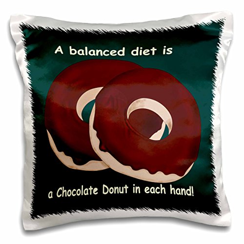 3dRose A Balanced Meal a Chocolate Donut in each hand - Pillow Case, 16 by 16-inch (pc_27413_1)