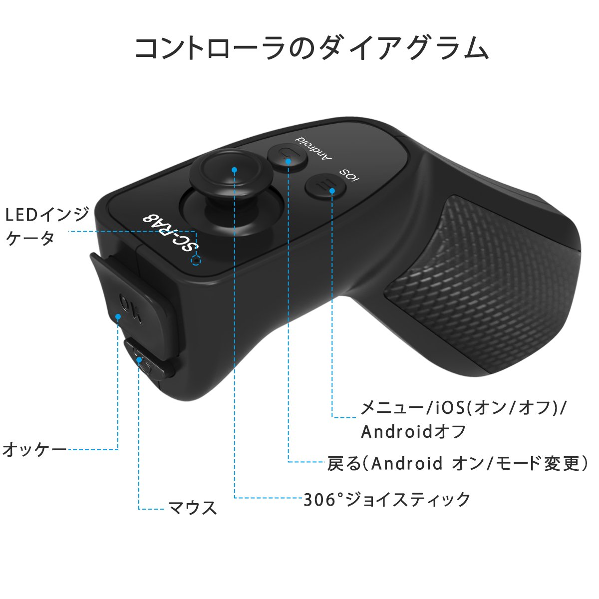 There are menu, return, 360 degree joystick, OK, mouse button.