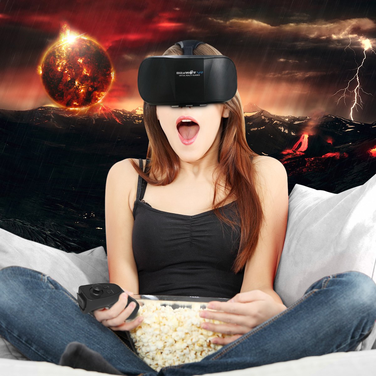 BlitzWolf uses VR glasses to enter the 3D Virtual Reality Viewer, view Hollywood hits anytime, anywhere and provide a VR experience like 3D home cinema.