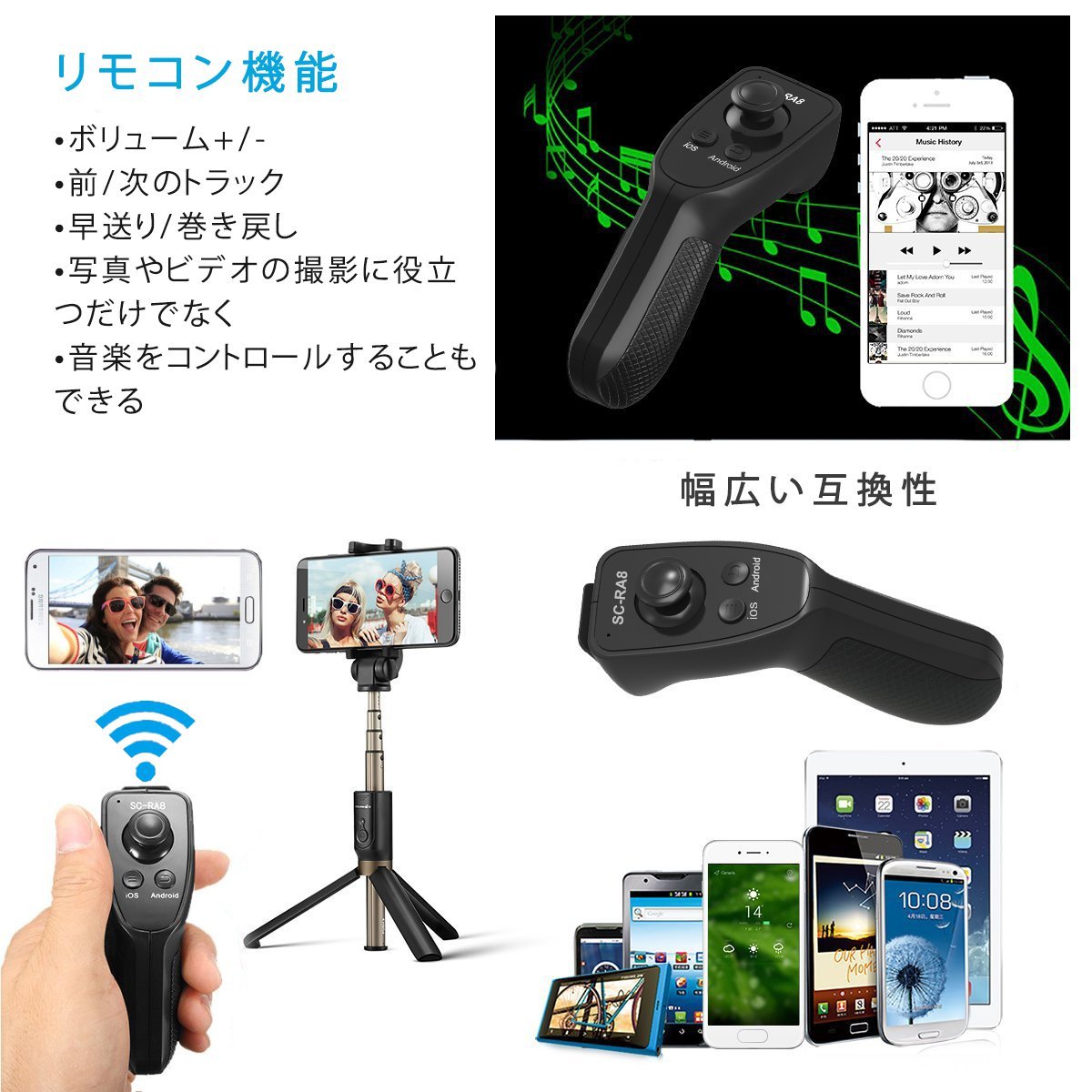 Upgraded Bluetooth remote control supports iOS and Android smartphone.