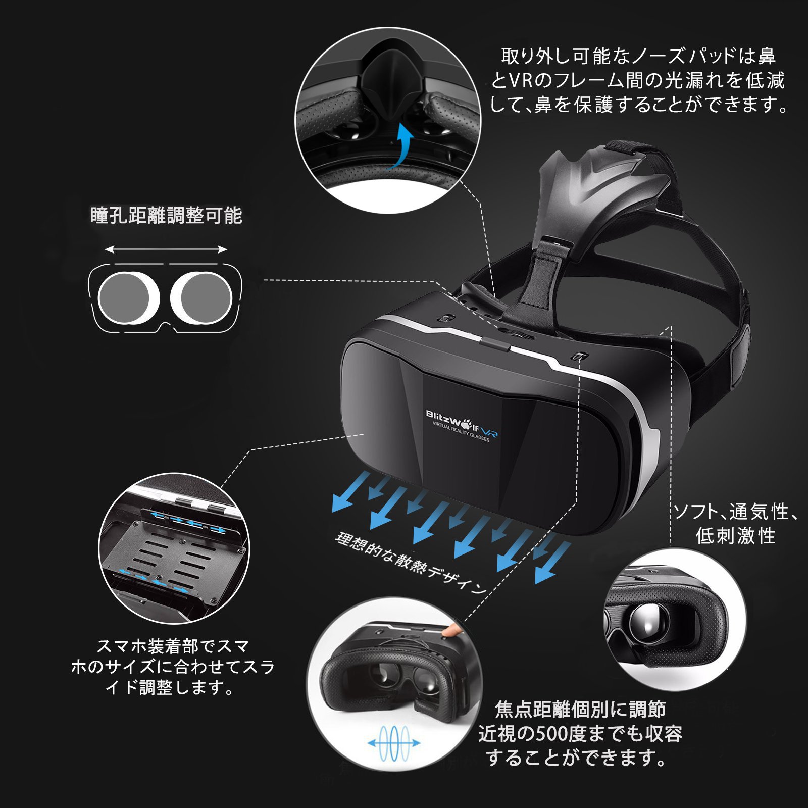 BlitzWolf vr Goggle provides high quality and suitable design suitable for wearing after 130 anti-straw experiments and 72 hours high temperature experiments.