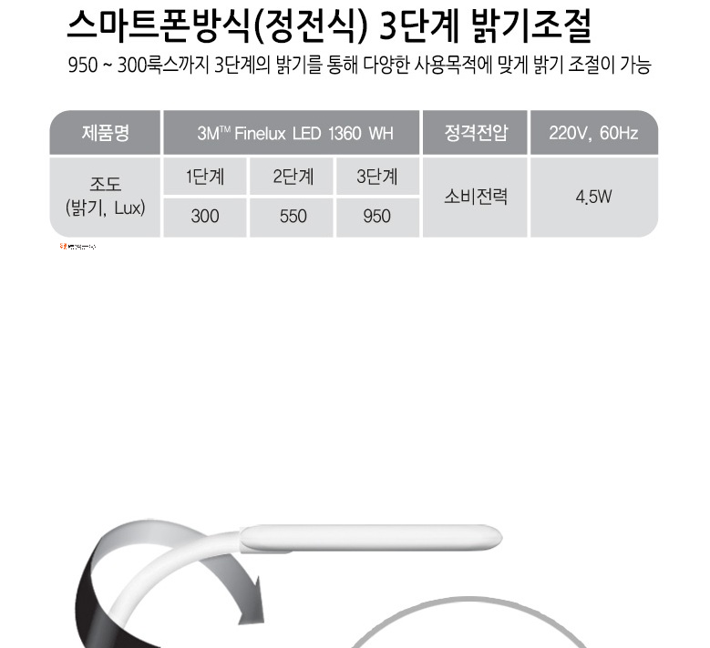 Brightness: 950 ~ 300 lumens LED light source, three-block brightness (up to 950 lumens minimum 300 lumens)