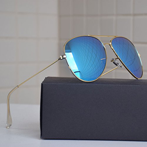 Classic aviator sunglasses with metal frame featuring padded tips and etched logoing at lens