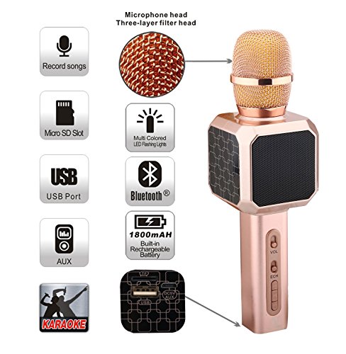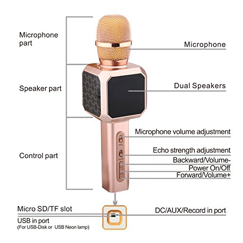 【Multifunctional Karaoke machine speaker】-3 in 1 multifunctional karaoke machine microphone player,can be as a normal microphone,a high quality treble bass karaoke machine speaker and bluetooth microphone for pc android iphone system automatically