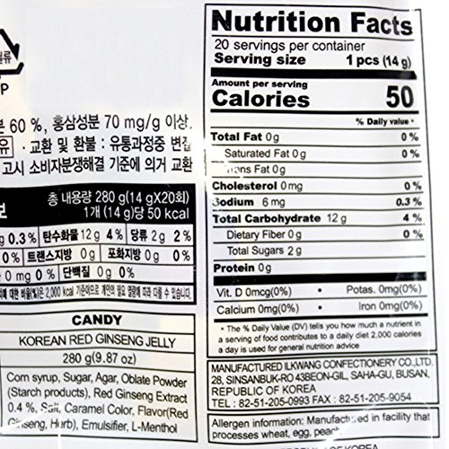 -. Binding : Misc. -. Brand : ROM AMERICA -. EAN : 0720189602399 -. Feature : Korean Red Ginseng Jelly / [ 2 Packs ] / 280g x 2 / korean Ginseng, which is considered the herb among thousands of kinds, has been studied bu modern medical science. / Product of Korea -. Label : ROM AMERICA -. Manufacturer : ROM AMERICA -. PackageQuantity : 1 -. ProductGroup : Grocery -. ProductTypeName : GROCERY -. Publisher : ROM AMERICA -. Studio : ROM AMERICA -. Title : [ 2 Packs ] Korean Red Ginseng Jelly - 280g x 2 홍삼젤리 -. UPC : 720189602399