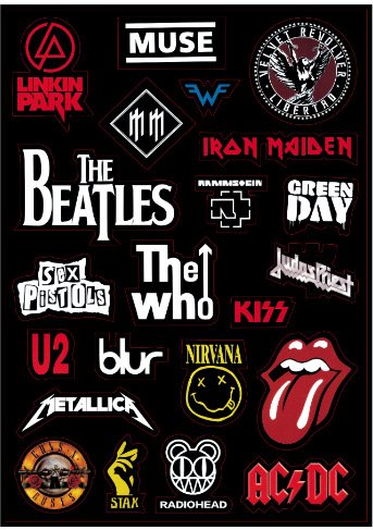 Bamboo's Grocery 2PCS Children's Room Decor Labels, For Luggage Suitcase ,Laptop, Mullti Music Band Logo Beatles, Linkin Park, U2, Waterproof Stickers (C10)