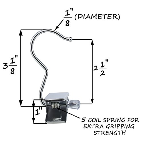 - Feature : KEEP CLOTHING & ACCESSORIES AT THE READY ANYWHERE Use in your closet, in the bathroom, in an entryway or even in the kitchen. Hang clothes out to dry or organize them in the laundry room. Pack them in your suitcase or bag to use when you're traveling in a motel, hotel or even a tent! Perfect travel set replacement for clothespin, boot clip, boot hanger, hanging hooks, clothes hanger, hanging clothes pin, drying rack, hanging clips, or a clothes drying clothes pin. / THE DURABLE, CONVENIENT SOLUTION Plastic clip hooks break after just a few uses and are hard to open and close. Our quality hooks offer a 13/16" opening for ease of use and strong enough to truly stand the test of time. A space saving alternative to an expensive bulky floor stand dryer. Build your own clothes rack or shoe rack with these innovative clip hooks. Your imagination is unlimited for the multi uses of these versatile hooks in your home. / NO MORE MARKS! Unlike wire or wooden clothespins, these clothing clamps won't leave impressions on your delicate clothing, as the metal teeth are covered with nylon padding for a non-slip grip. Polished chrome hook loops leave no marks or scratches on any shower curtain rod or door. Convenient damage free solution for boot storage of expensive dress shoes, cowboy boots, suede boots, leather footwear, rubber boots, and even vinyl fetish wear. / A MONEY-SAVING SET Get a total of 10, 3-inch hook clips, which will fit on any hanging hook or a rod that measures up to 1" in diameter. Multi purpose hangers can be used on wire shelving, tool rack, other hook racks. Handy for holding tools or rags while working on a ladder. Used by chefs to replace a towel holder in the kitchen or hold a trash bag off the floor when cleaning. Useful in the car to hook over the rear view mirror to display a parking pass. / ★★★★★ SAVE MORE TODAY! Add to Cart to reveal today's instant huge rebate discount pricing from the manufacturer for authorized Amazon sellers ★★★★★ ULTRA STRONG Heavy-duty, double plated nickel steel clips with integrated hooks can hang up anything with ease for storage or drying. Perfect for hanging everything from the heaviest adult sized coat or pair of jeans to baby diapers; store belts and scarves in the closet, hat collections, swimsuits, bridal wear. Strong enough for one clip to hold a pair of your heaviest set of boots. Keep a set handy near the laundry clothesline for hanging extra heavy beach towels and bed sheets.