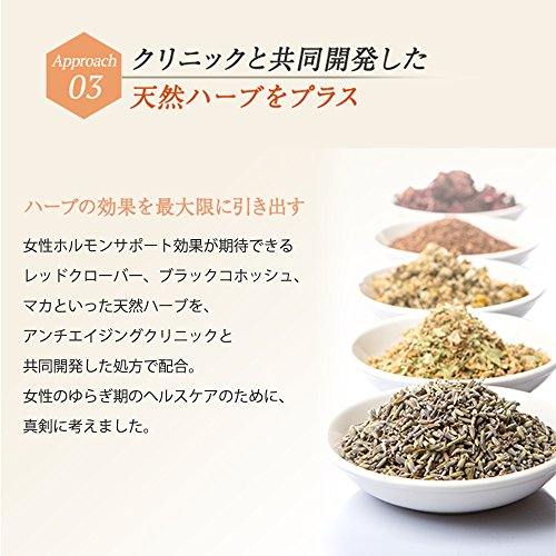 【여성 호르몬서포트작용】가 매우 높은,신성분《에쿠오루》의 10mg배합에 덧붙여,클리닉과 공동 개발 로 인해 실현 한 천연 메디컬 허브 배합으로,동요 증상에 다각 적 집중 어프로치를 실현.