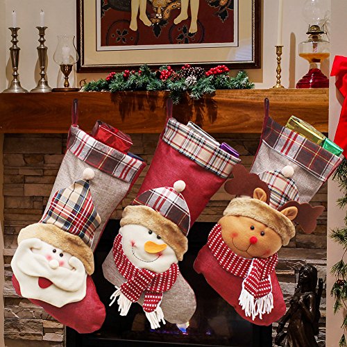YAMUDA 3 Pcs Set Big size Classic Christmas Stockings Christmas Stocking XMAS Gift