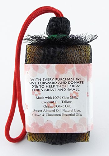 Creature Blok is dedicated to making natural and healthy soap. Like all of our soaps, the Cinnamon & Clove Blok is handmade with 100% goat milk (no water!) so every bar is unique. The combination of Cinnamon and Clove essential oils makes for a blok that smells like that perfect breath of fall while still being great for your dog's skin, and the clove oil helps keeps bugs away. All of our soaps are fragrance free!We know how important your dog is to you, and our soaps are made to be easy to use while keeping them healthy and happy. Each blok is wrapped in netting with a rope handle so that your dog can get the benefit of a natural bar of soap without the hassle of a loose bar, and our ingredients are chosen with dogs in mind. You can even leave the soap on their fur with no problems!