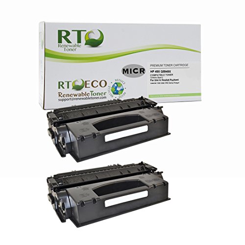Studio : Renewable Toner Publisher : Renewable Toner Binding : Electronics Product Description Check printing made easy with RT MICR Toner RT Compatible MICR for HP 49X / HP Q5949X ? Quantity: 2 ? Magnetic toner for check printing ? High Yield: 6k pages based on 5% coverage. Compare to HP 49A toner cartridge with 2,500 page yield. ? Printers: the RT Compatible MICR for HP 49X / HP Q5949X is designed for HP LaserJet 1320 1320n 1320nw 1320t 1320tn 3390 3392 printers. The Renewable Toner Advantage ? Higher print quality. The RT Compatible HP 49X Toner Cartridge is ISO 9001 and 14001 certified and tested to ensure superior performance. ? Peace of Mind. You don't need to worry about smudges, leaks, or defects. We offer a lifetime warranty and will replace any cartridge free of charge. ? Superior Support. We know printing is important - that's why we have a U.S. based customer support team. We are customer obsessed! It makes our day to make you smile. Contact us with any technical or product issues and we will be happy to assist you. ? Earth Friendly. We promote a cleaner, greener future. Contact us today about our recycling program. Printing Tips ? A common error is the "non-genuine" message. If this occurs with the RT Compatible HP Q5949X MICR Cartridge, press OK or Continue continuously to dismiss the message. The printer will resume your print job. ? Despite the extreme care we take in packaging, sometimes items are damaged during shipping and this can affect print quality. In this case, we immediately send an RT Compatible HP 49X MICR Toner cartridge free of charge. If you order more than one cartridge, please test them all. Happy Printing! 0