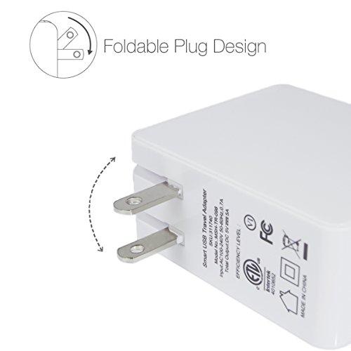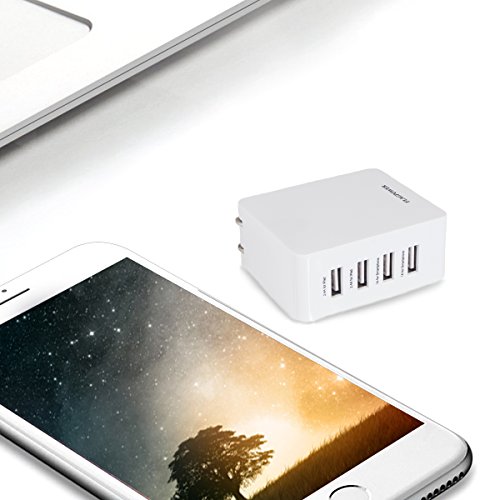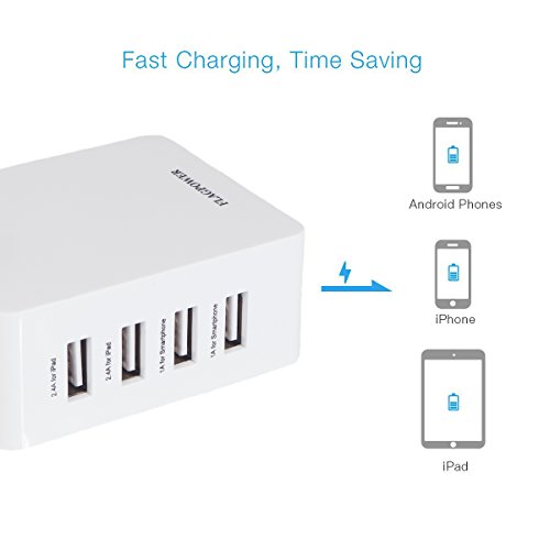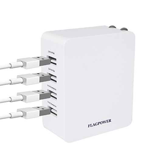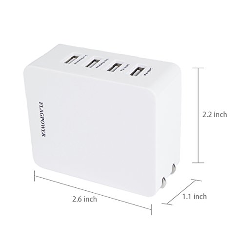FLAGPOWER 34W 5A Wall Charger,4-Port USB Travel Charger with Foldable Plug, SmartID Charge Technology for iPhone 6s, 6 Plus, iPad Pro / Air / Mini, Galaxy S7 S6 Edge and More