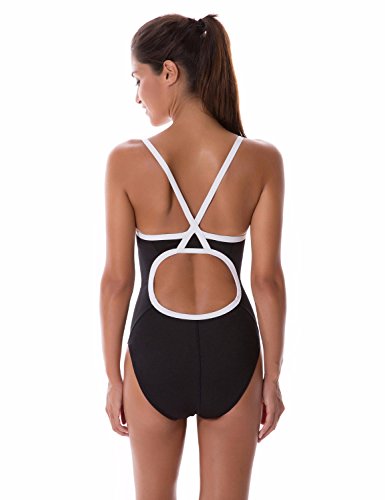 -. Binding : Misc. -. Brand : SYROKAN -. Department : womens -. Feature : Smooth snug supportive fit might speed you up / Thin straps look a bit more feminine / Fabric hydrophobic reduces resistance of water / Modest square neckline cut, cross keyhole back / Moderate leg line and rear coverage -. ProductGroup : Apparel -. ProductTypeName : SWIMWEAR -. Title : SYROKAN Women's Sleek Solid Elite Training Sport Athletic One Piece Swimsuit