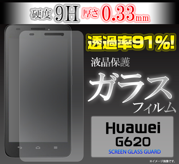 Huawei G620の液晶画面を守る液晶保護ガラスフィルム。