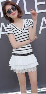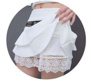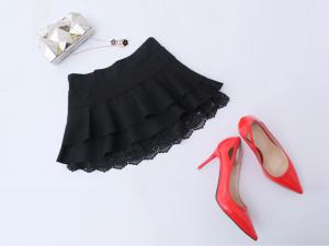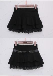 フレアミニ丈スカート 裾レース ショートパンツ インナーパンツ フリル シンプル プチプラ ローウエスト