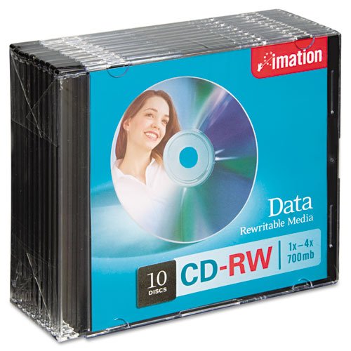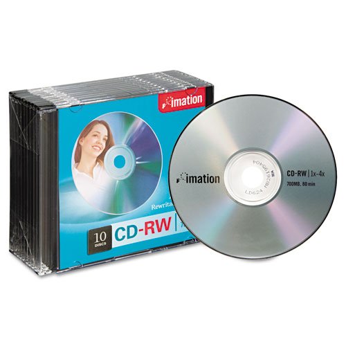 CD-RW Discs, 700MB/80min, 4x, w/Slim Jewel Cases, Silver, 10/Pack