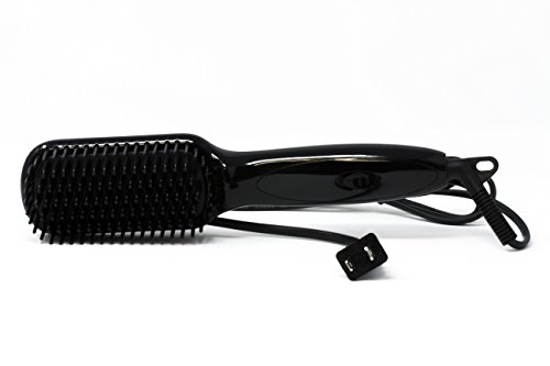 Juoos 2 in 1 Ionic Hair Straightener Brush, Portable Electric Hair Brush (Black)