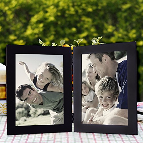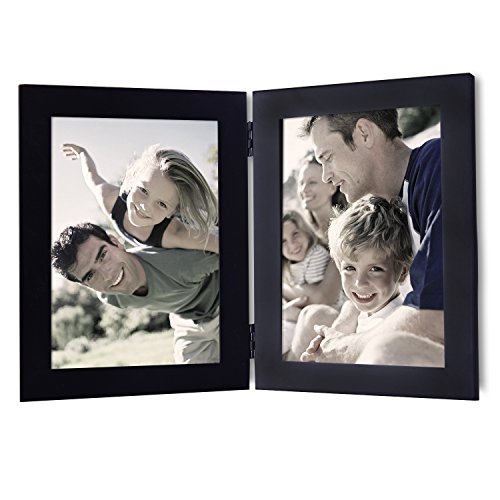-. Title : Adeco PF0412 Decorative Black Wood Hinged Table Top Vertical Picture Photo Frame, 2 Openings, 5x7"